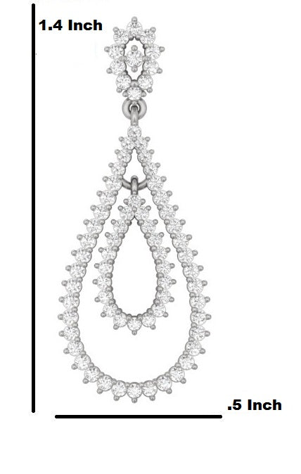 Teardrop Egg Shaped Earrings for Women 14K White Gold with Brilliant Diamonds TW 1.15 Ct