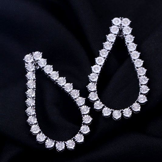 Large Diamond Modern Illusion Teardrop Dangling Earrings for Women 14K White Gold with Natural Real Sparkling Genuine Diamonds TW CT Drop 1.5 Inch Dangle Earrings