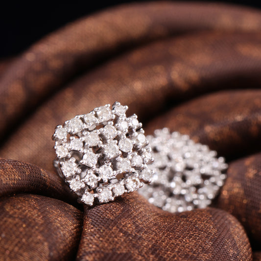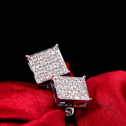 Small Square Halo Stud Scatter 14K White Gold Diamond Earrings .75 Carat TW