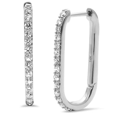 Square Diamond Hoops Earrings 14K White Gold Fine Modern Jewelry Handmade .5 Ct Carat for Women Modern Paperclip Earrings 3/4 inch…