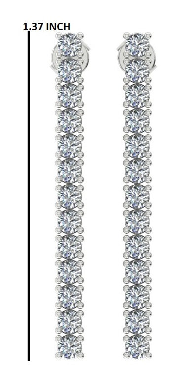 LAB GROWN Line Diamond Earrings - TW 2 Ct - 14K White Gold - Dangle Elegant Linear Earrings in Real Solid Gold with Brilliant Lab Diamonds EF VVS