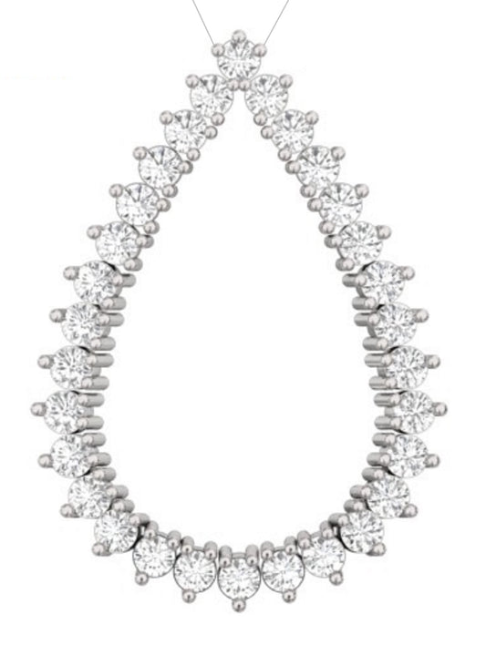 14K White Gold Diamond Pendant Necklace TW .35ct - Modern Filigree Teardrop Pear Fancy Brilliant Women's Jewelry